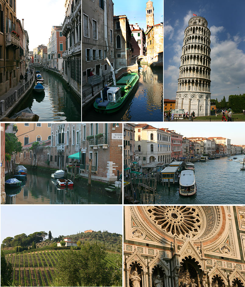 Positive: Very nice terrain, nice countryside. Extremely good landmarks and historical sites. Prices of food are much better than the UK and a little better than France. Quite easy to find good pizza, pasta, and sandwiches. Has a unique style. Venice is wonderful. Many things that you can't see anywhere else in the world.