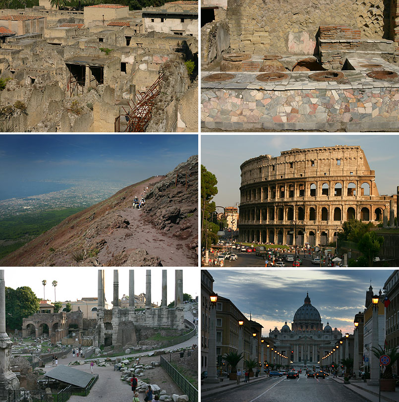 Herculaneum and Mt. VesuviusI headed south from Naples and walked through the ruins of Herculaneum, an ancient city that was very well preserved by the ashes of a Mt. Vesuvius eruption. After that I climbed to the top of Mt. Vesuvius, still an active volcano, and looked down into the 1000+ foot crater. The views were amazing. I took a very wild bus ride down the mountain and eventually went up to Rome from the Naples train station - yes, I went back, and this time I got a great Italian sandwich that was very cheap, even by U.S. standards.