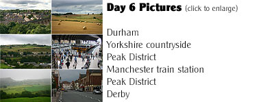 I explored Durham in the morning (VERY nice town that I'd love to go back to) and then headed down to York, where I caught another train through Leeds to Manchester. From there I went southeast through the Peak District (beautiful area!) to Nottingham.