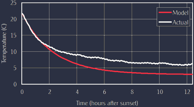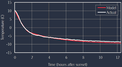 This doesn't mean it can forecast temperatures this well. It just means my equations can draw very good temperature curves for one average night and one really cold night. I think that in itself is great progress.