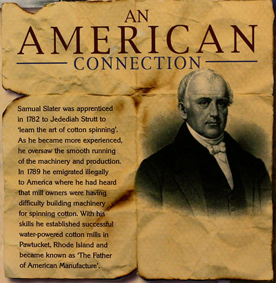 Today I visited Belper, home town of Samuel Slater before he came to America. Here's the story from the wall of the Derwent Valley Visitors Centre in Belper:
