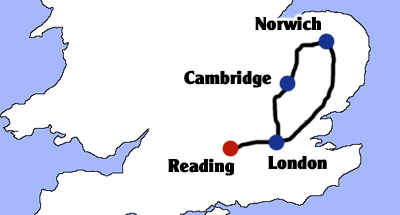Today I went to London, Ipswich, Norwich, Cambridge and back to London.